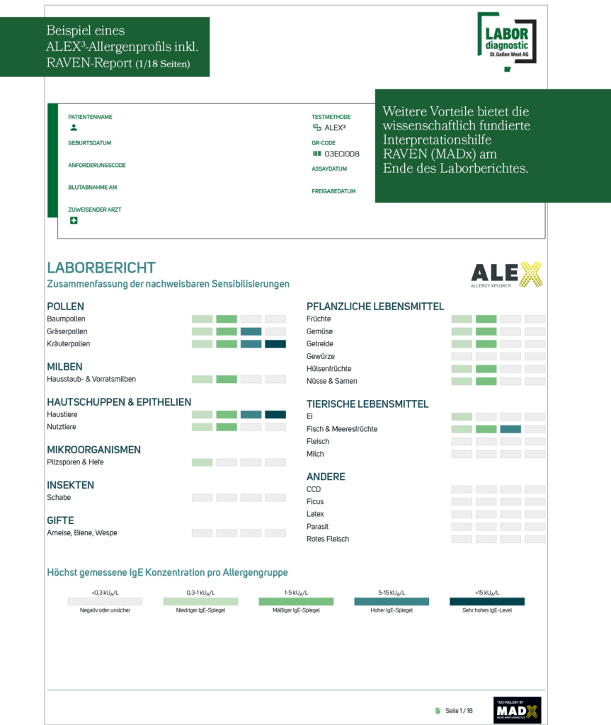 ALEX3-Allergenprofils inkl. RAVEN-Report (1/18 Seiten)